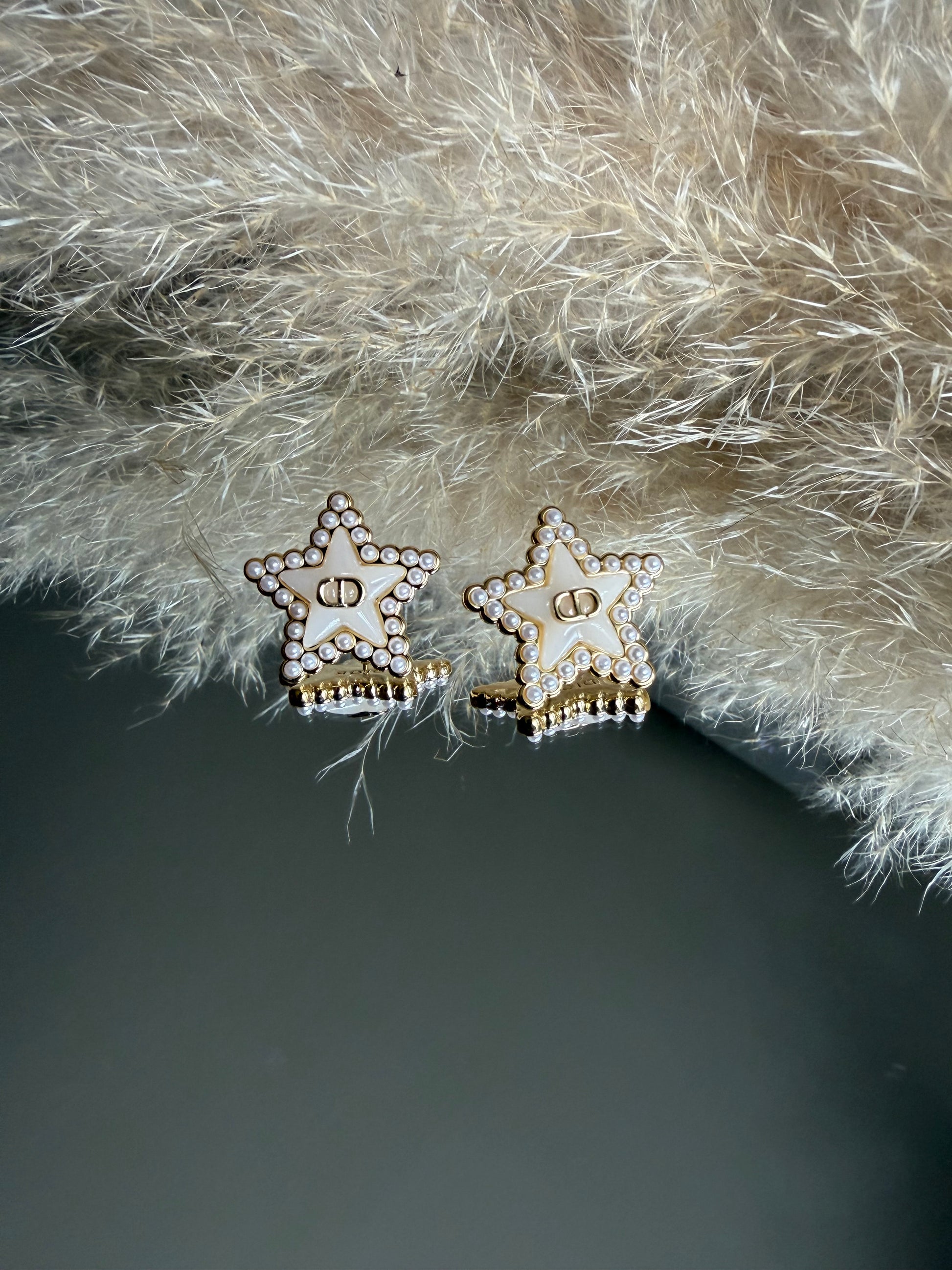 Добави фин и изискан акцент към визията си с тези обеци със звезда в цвят слонова кост, перли и златиста основа.